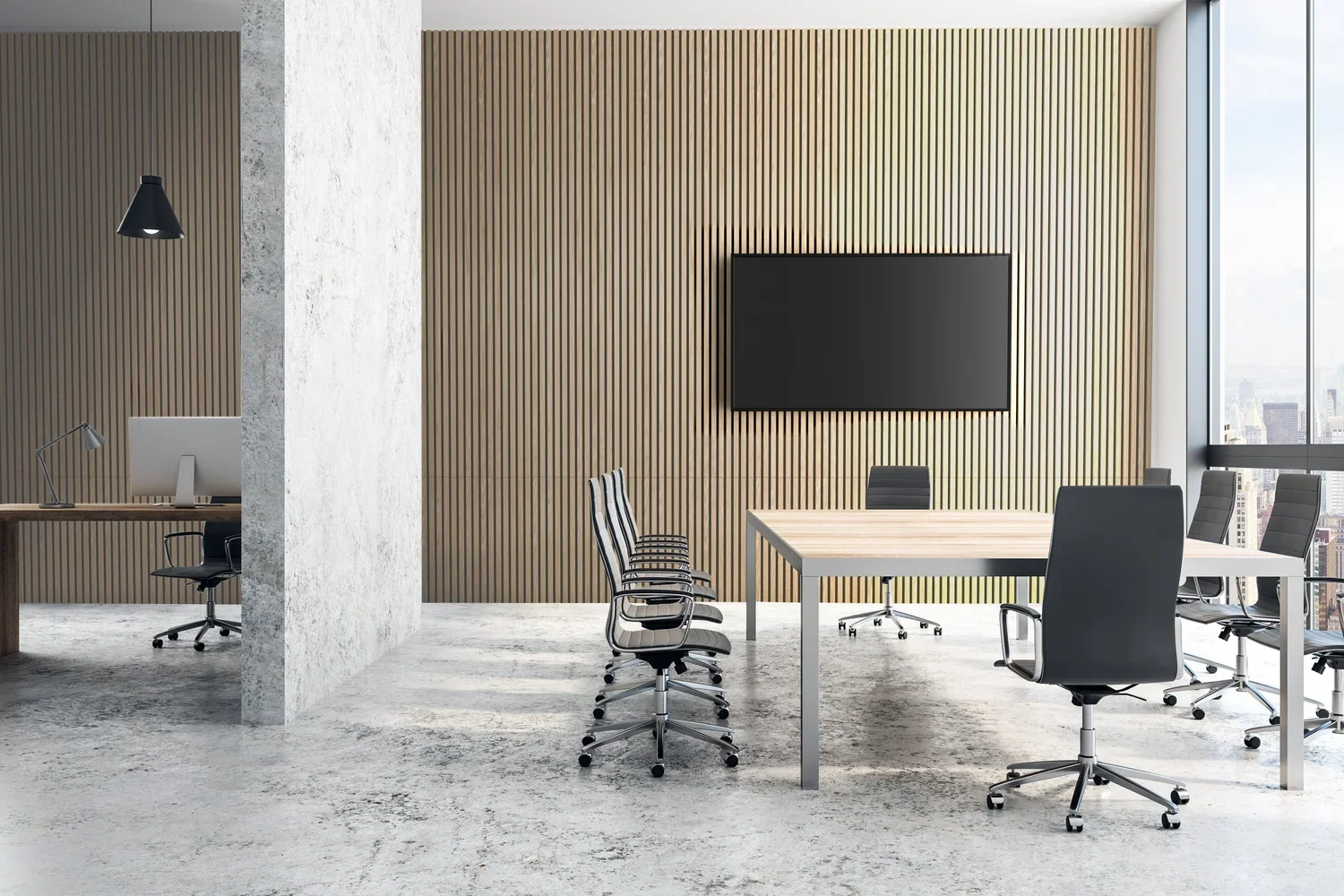 Los paneles de fibra de vidrio Livello recubiertos con tela son una solución más económica y eficaz. Son ideales para espacios grandes donde el tiempo de reverberación es crucial, como las salas de conferencias.